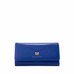 La forma de las alas de la mariposa inspira la silueta de esta colección de carteras y billeteras de cuero liso suave al tacto. Se destaca de su diseño la pureza y simpleza de las líneas, y la elegancia de sus detalles, en especial su particular cierre..