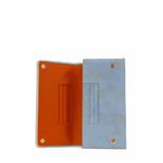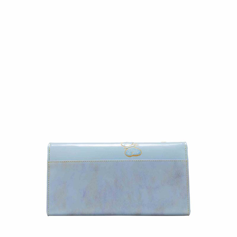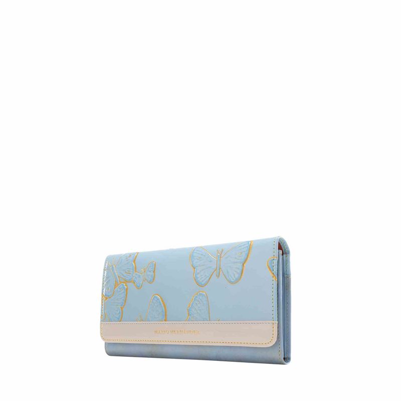 Esta versión de color de la colección emblemática de la marca es perfecta para las ciudades de clima cálido o para llevar con looks de verano. Las mariposas grabadas sobre la piel azul pastel resaltan gracias a un efecto dorado y contrastan con el cuero naranja y beige que la acompañan como complemento. Un básico para las amantes de los todos suaves y fáciles de combinar..