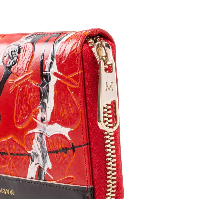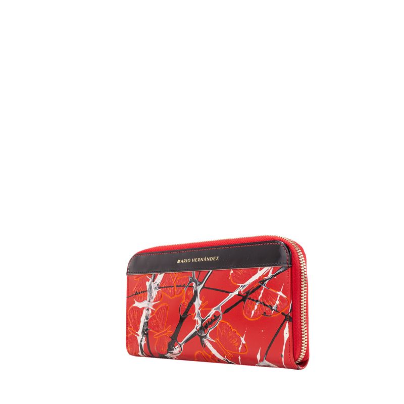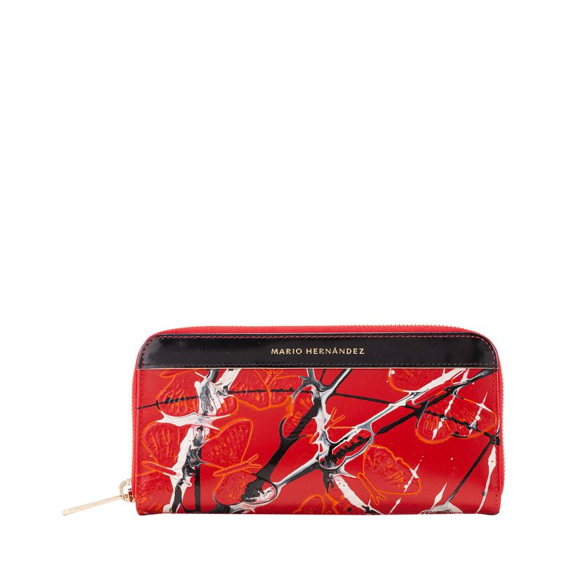 La colección emblemática de MARIO HERNÁNDEZ se viste creatividad para rendir homenaje a quienes se dedican a expresarse a través de la pintura. El cuero de esta línea, tinturado a mano en Italia mediante un proceso especial conocido como tamponado, ofrece diferentes efectos de color y textura. En este caso, las mariposas grabadas sobre la piel roja, a la que se han añadido pinceladas negras y blancas, resaltan sutilmente gracias a un halo dorado..