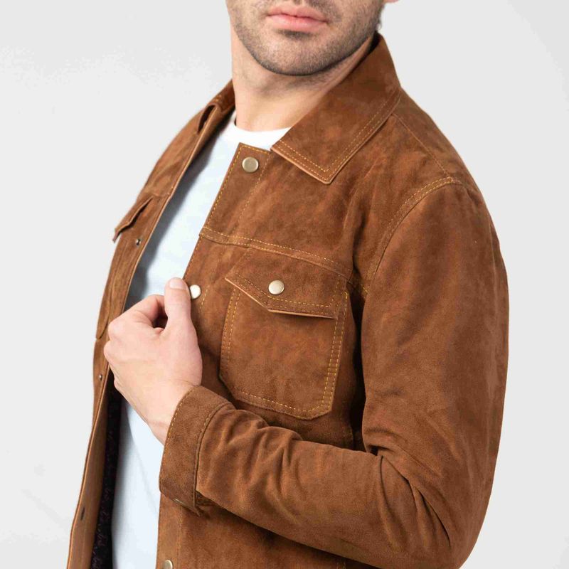 Esta prenda tiene la misma silueta de la chaqueta de denim. Su estilo es casual atemporal, así que complementará de maravilla tus atuendos de fin de semana. Está hecha de gamuza y cuenta con cierre de botones metálicos. Sus dos colores, azul y camel, son fáciles de combinar..