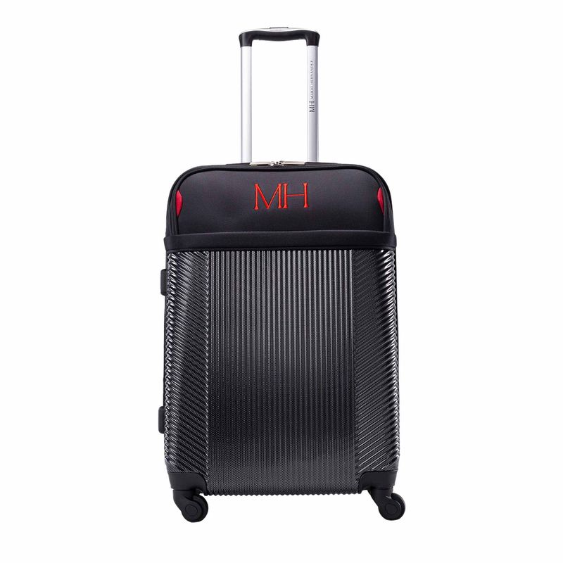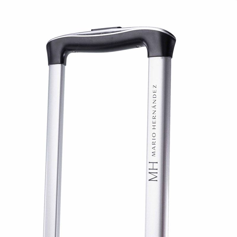 Esta línea de maletas de viaje semirrígidas, hechas en lona, es versátil y ligera. Cuenta con ruedas que giran 360°, tres tipos de manija y cierre de cremallera con clave. Se destaca de su diseño el rombo con las iniciales MH de color contrastante.