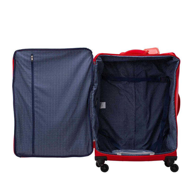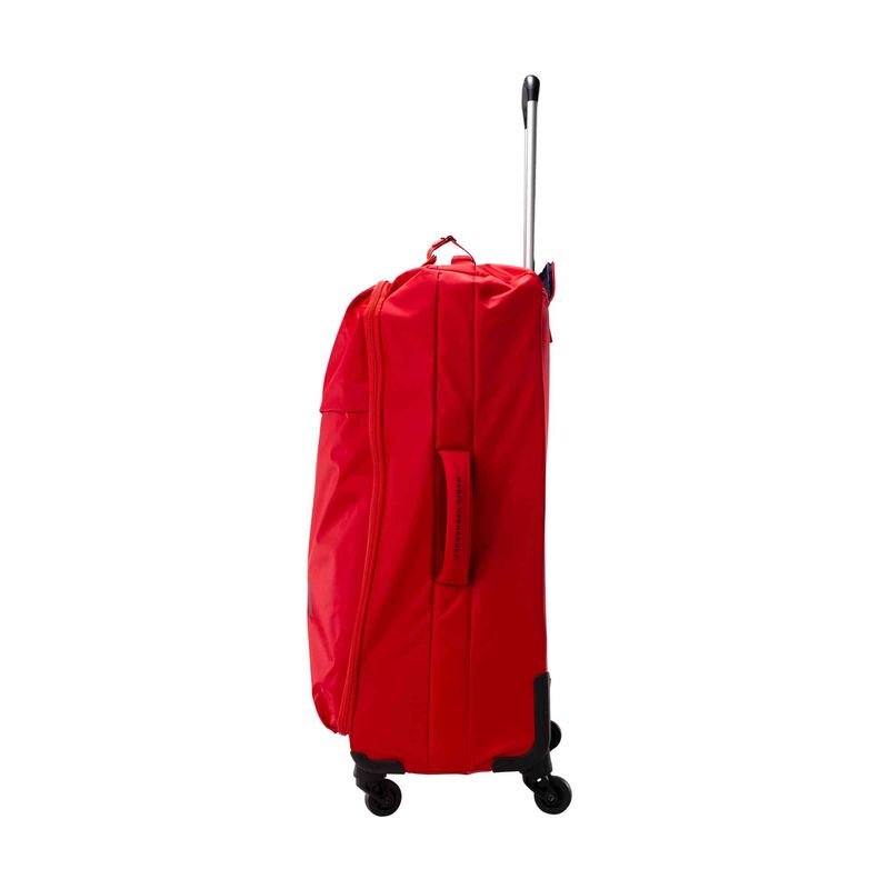 Esta línea de maletas, bolsos y accesorios de viaje está hecha en poliéster de 600D, material ligero, compacto y de gran durabilidad, que es repelente al agua y resistente a la humedad y a la abrasión. De cuerpo blando, es desetructurada, flexible y suave.