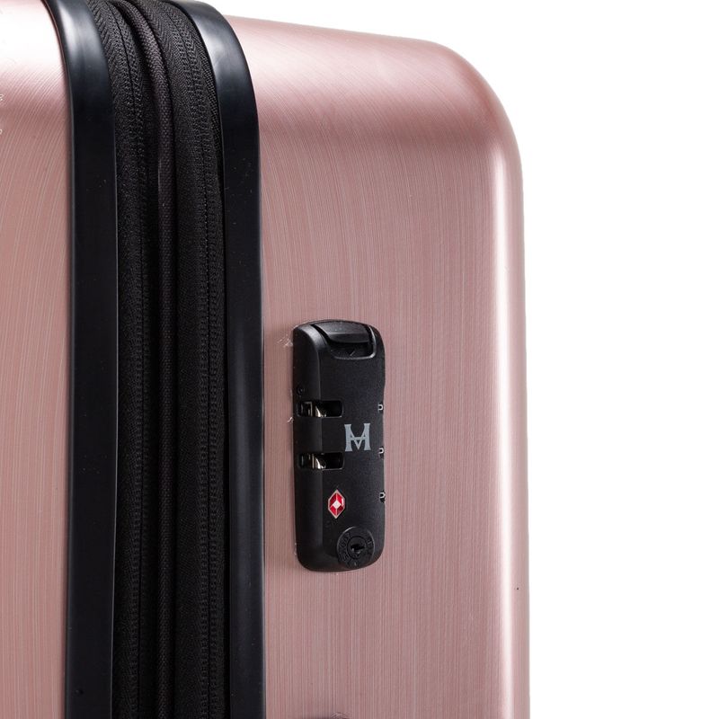 Esta colorida línea de maletas hechas en policarbonato, lleva el nombre MARIO HERNÁNDEZ en altorrelieve. Ligera y resistente a los golpes, las piezas de la colección tienen cuerpo expandible, candado TSA y cortina interna..