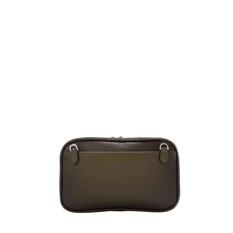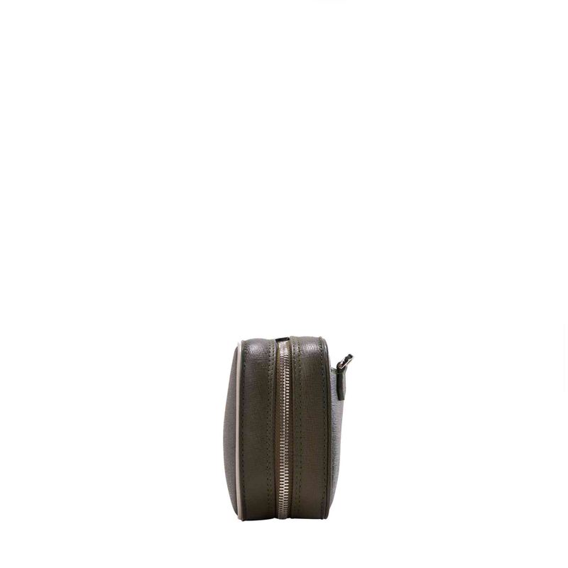 * Cuero vacuno con acabado de placa Saffiano como material principal. <br> * Herrajes en zamac con acabados en color níquel.