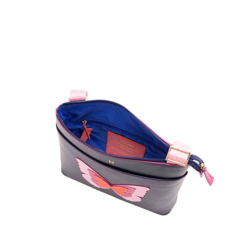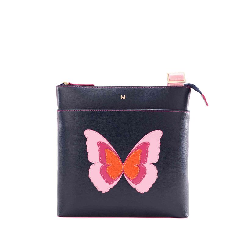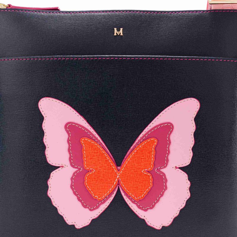 Colorida, al igual que las mariposas que han hecho famosa a la marca. Así es esta colección de carteras y billeteras de cuero de placa tipo saffiano con siluetas básicas y funcionales, y diseño casual, que se viste con los tonos de la temporada para exaltar la belleza de estos insectos alados, que se ven hermosamente bordados sobre cada modelo.
