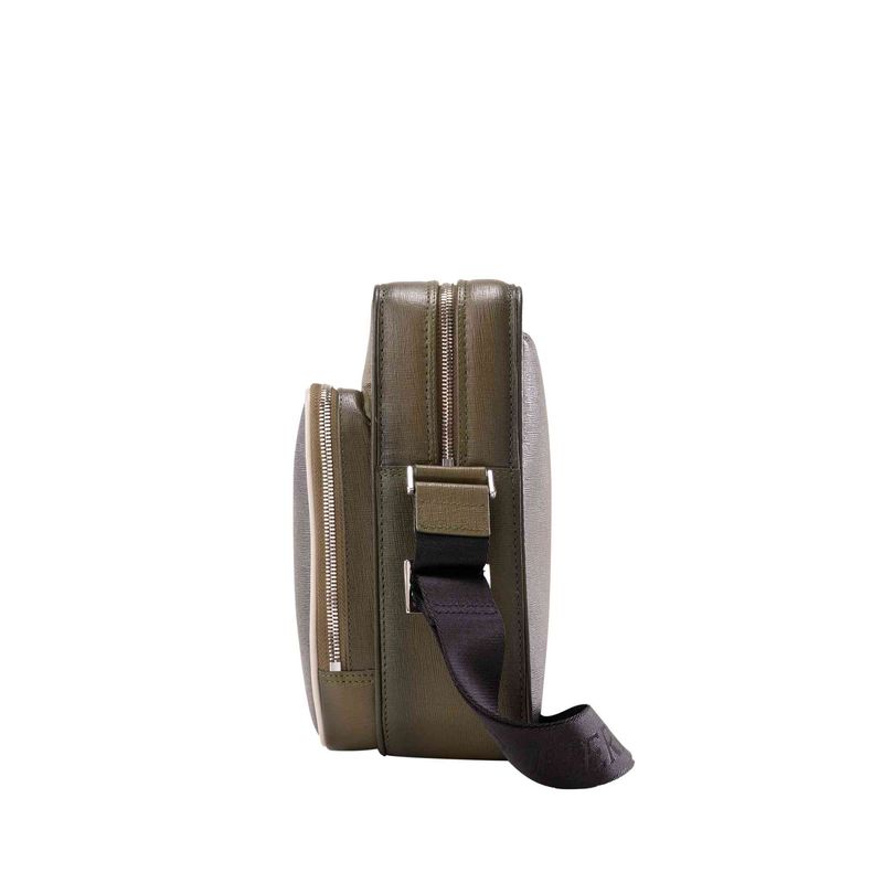 * Cuero vacuno con acabado de placa Saffiano como material principal. <br> * Herrajes en zamac con acabados en color níquel.