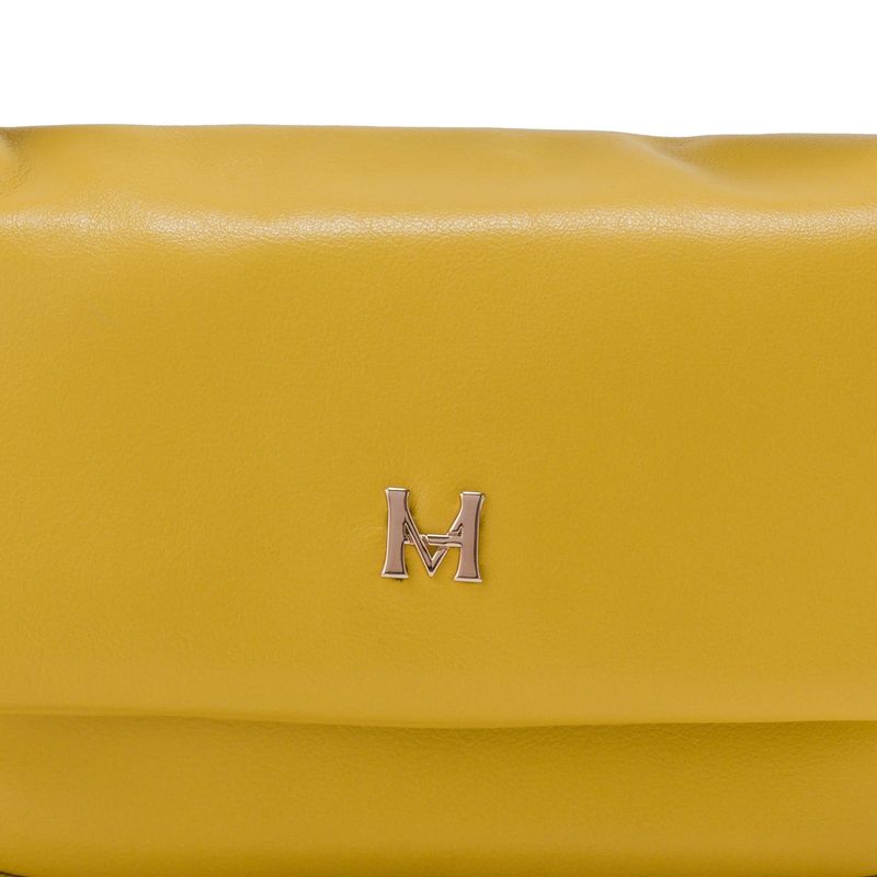 * Cuero vacuno extra suave y abullonado que permite que sea más maleable. <br> * Herrajes exclusivos en zamac con acabado en color oro. <br> * Forro 100% poliéster con recubrimiento impermeable.