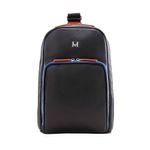 * Cuero vacuno suave con grano natural, y detalles en gamuza. <br> * Forro 100% poliéster con recubrimiento impermeable. <br> * Herrajes en zamac