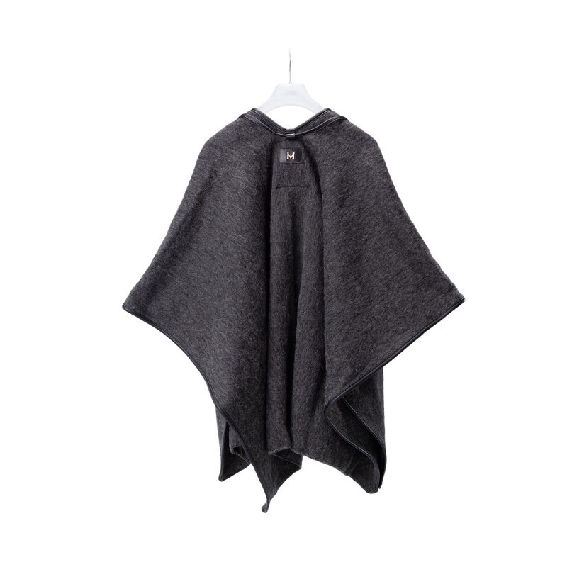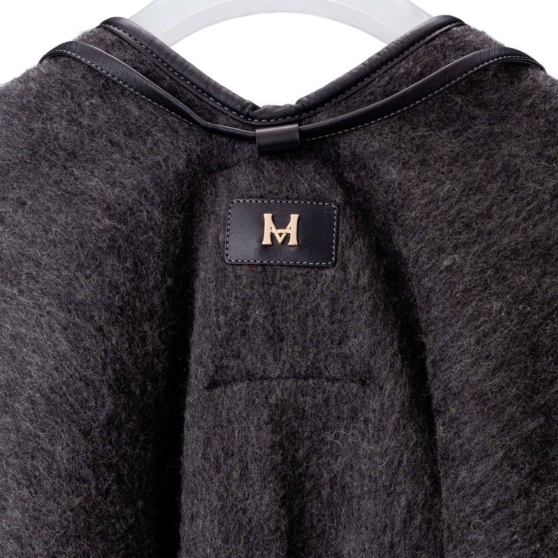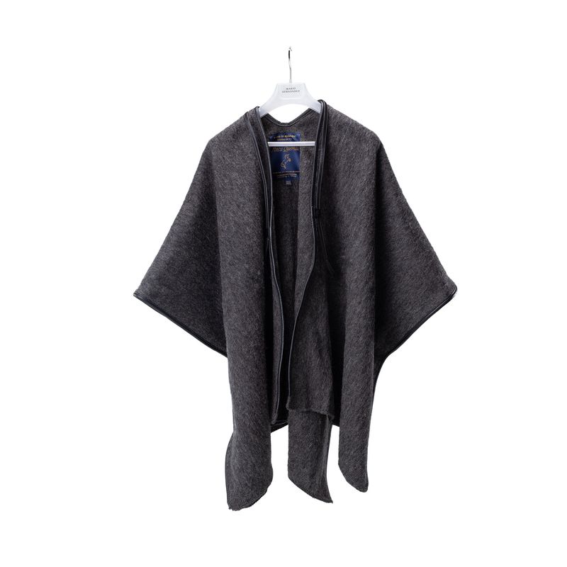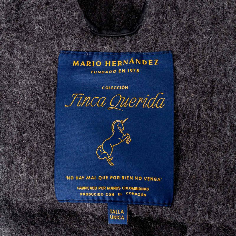 Las ruanas MARIO HERNÁNDEZ conservan la estructura y horma de las originales, así como las franjas que las caracterizan. Sin embargo, la marca les da un toque contemporáneo con una abertura frontal. Además, les agrega los ribetes de cuero en los laterales y la pechera, las tiras removibles de la parte frontal y las señas de identidad de la marca: el unicornio quemado en uno de los pasadores delanteros y el monograma MH que va en la parte posterior. ¿El resultado? Un balance perfecto entre dos oficios hechos a mano en una prenda que se convierte en expresión del lujo colombiano.