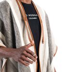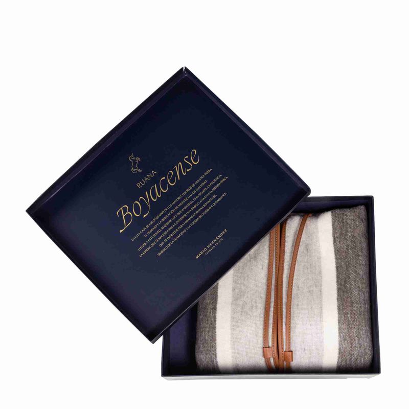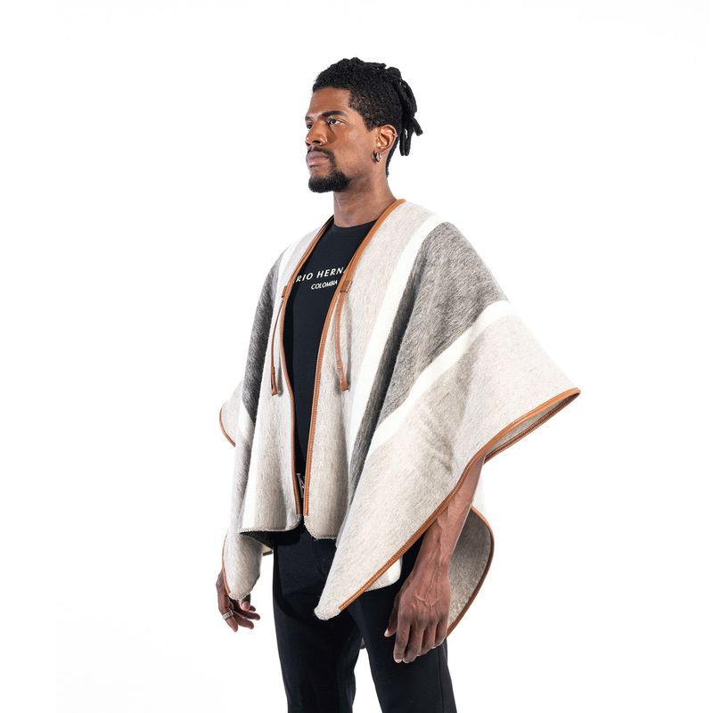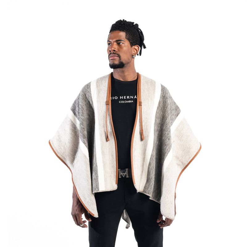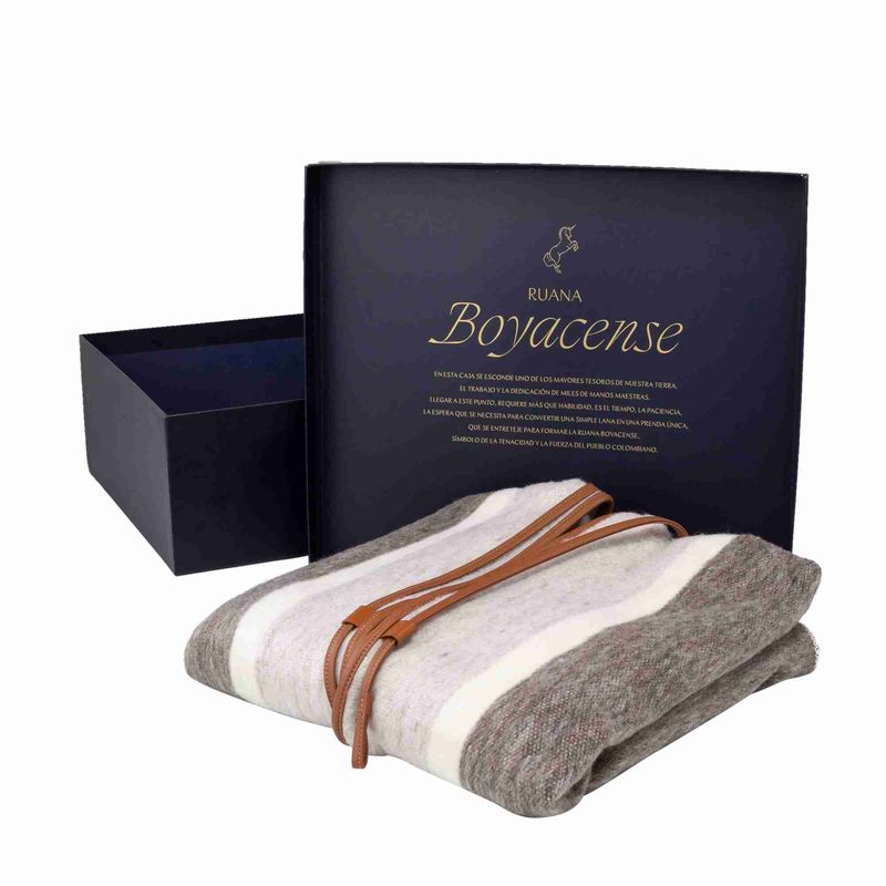 Esta prenda es elaborada en lana virgen, su tejido es realizado de forma artesanal hecho totalmente a mano; Es una fibra natural resistente al uso, por su material en lana virgen ayuda a mantener la temperatura del cuerpo. Estas ruana son significado de tradición y trabajo..