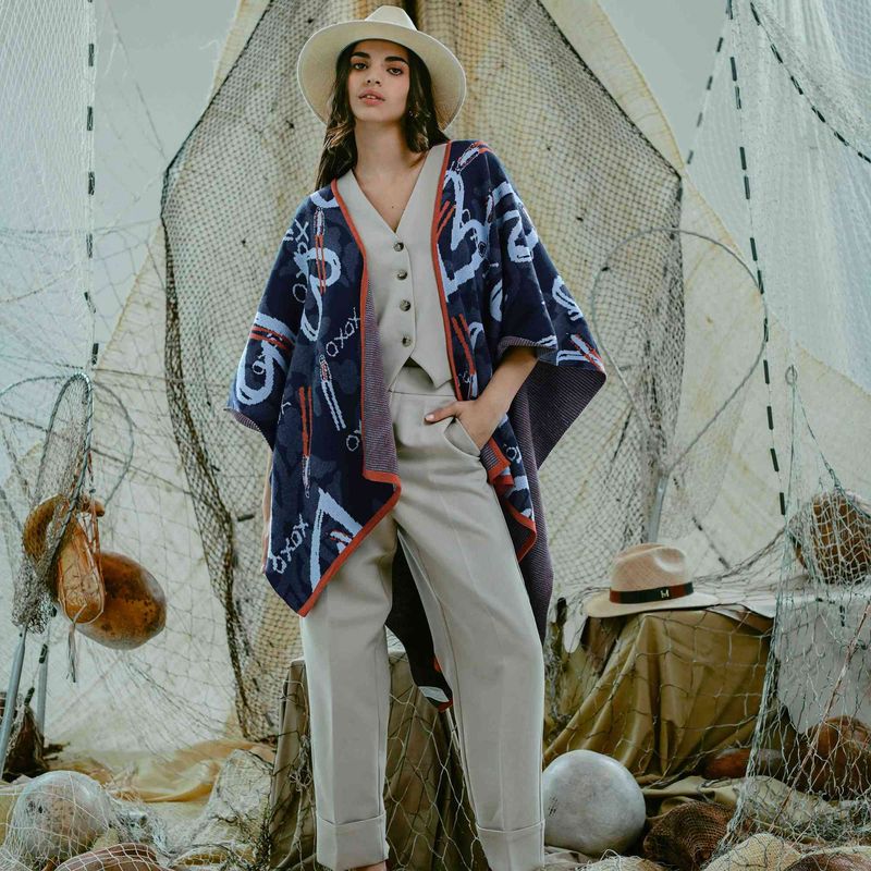 Este diseño, exclusivo de MARIO HERNÁNDEZ, protagoniza estas estolas de algodón tejido, que combinan una dupla de colores fáciles de llevar con los looks del día a día: granate y marfil, y negro-beige..
