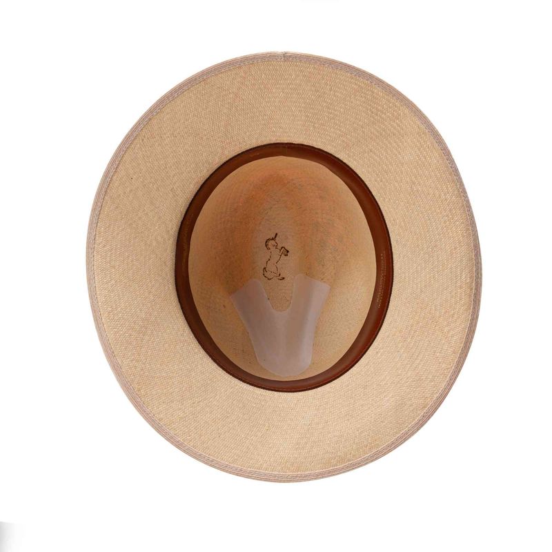 El sombrero aguadeño es una pieza representativa de la riqueza artesanal que tiene Colombia. Su laborioso tejido, hecho de fibra de palma de iraca, se realiza ciento por ciento a mano en Aguadas, Caldas, y su construcción se finaliza en nuestra fábrica en Bogotá, donde expertos artesanos se encargan de ponerle el tafilete y la cinta de cuero, y marcarlo con un sello al calor en la cara interna de la copa.