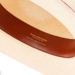 Tejido de Palma de Iraca con tira de cuero genuino y herraje monograma en zamac con acabados en color oro claro.