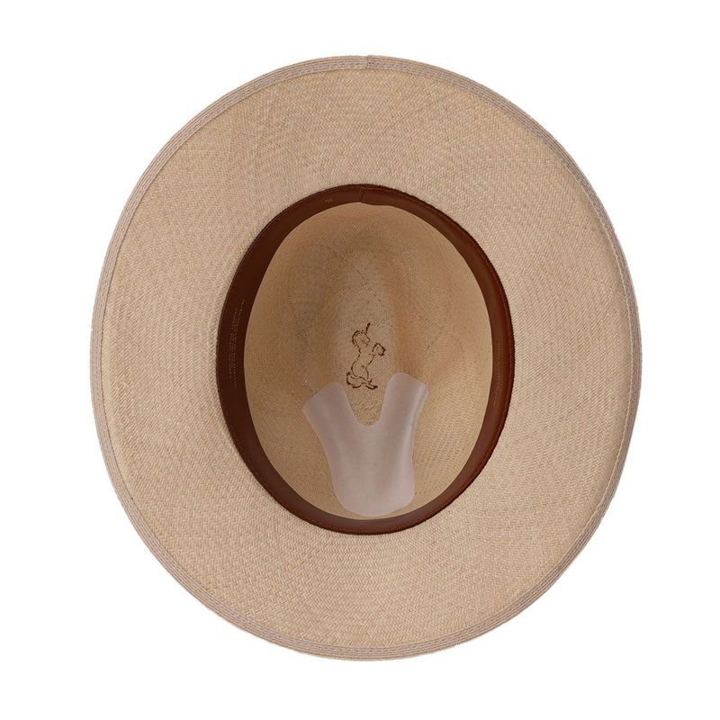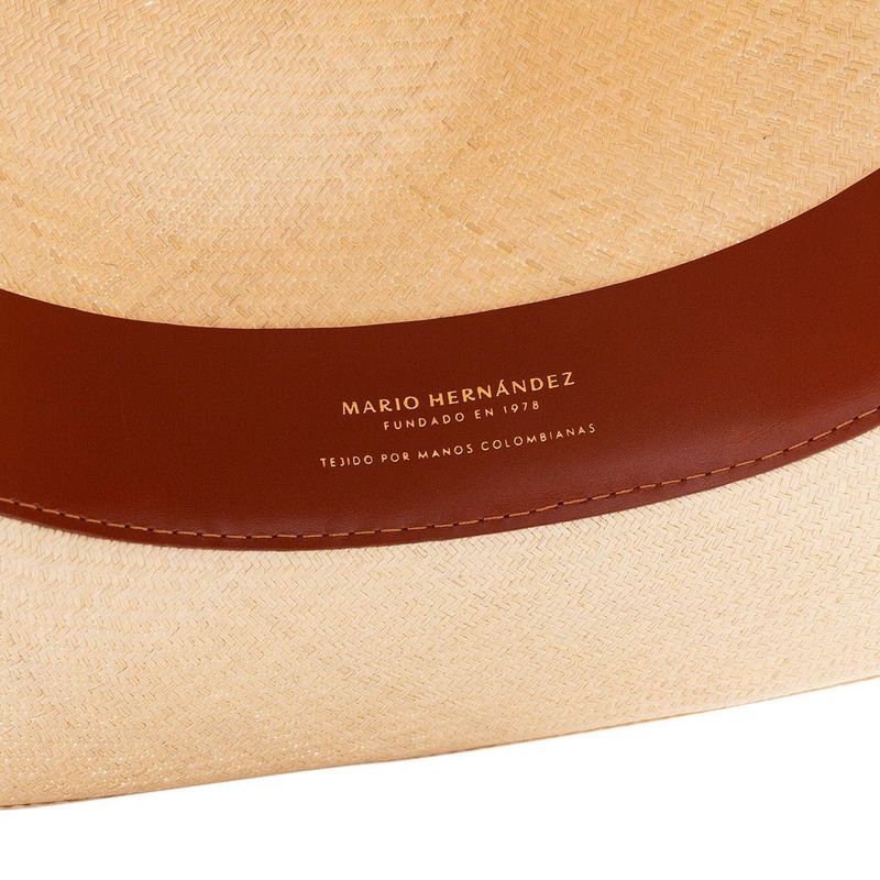 Sombrero clásico Aguadeño hecho a mano en Aguadas, Caldas, con cinturón de cuero liso color negro o coñac y el logo MH en Zamac con acabados en oro pálido.