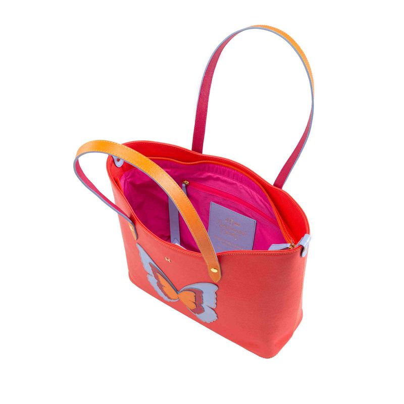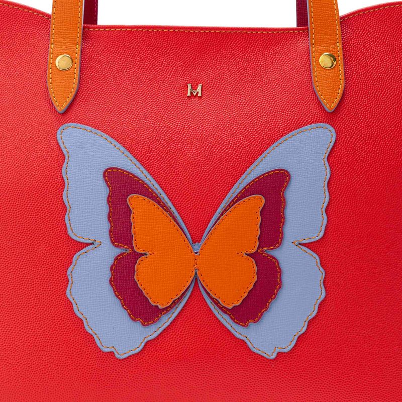 Colorida, al igual que las mariposas que han hecho famosa a la marca. Así es esta colección de carteras y billeteras de cuero de placa tipo saffiano con siluetas básicas y funcionales, y diseño casual, que se viste con los tonos de la temporada para exaltar la belleza de estos insectos alados, que se ven hermosamente bordados sobre cada modelo..